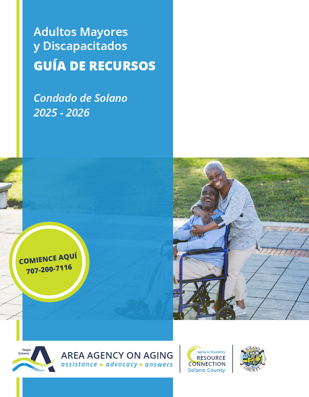 The Solano Resource Guide below, available in English and Spanish, outlines the wide variety of comprehensive services offered to older and disabled adults in the county. But further, more personalized support is additionally offered to help you navigate this directory.